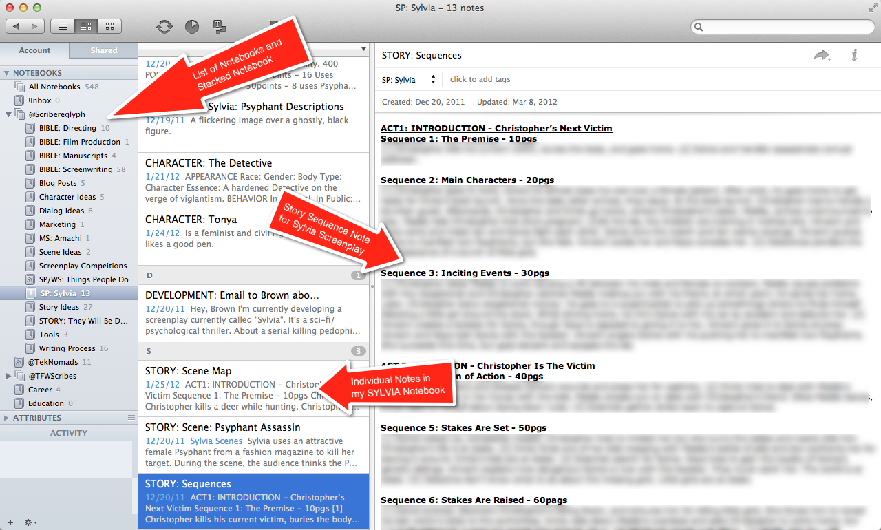I’ve been using Evernote to work on my latest screenplay: Sylvia. I’ve used it to develop the characters, the Acts, the Sequences, and the Scene Map. With all this information in Evernote, I can work on it anywhere, anytime, and don’t have to worry about transferring it all back to my main computer because once I open the Evernote Desktop app on my Main Computer, guess what? It’s already there.