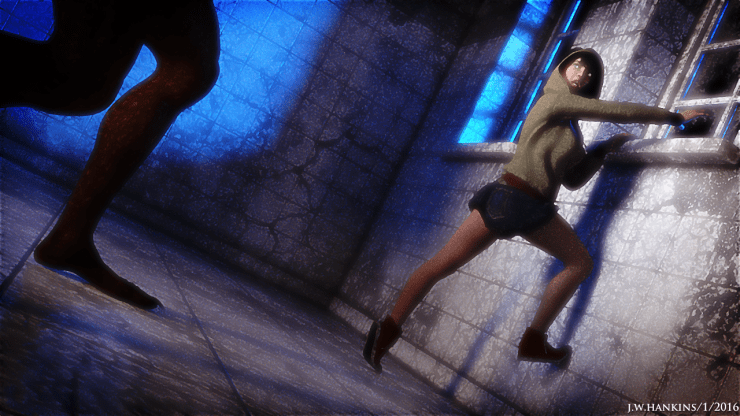 Gnashing its sharp-toothed maw, the beast was upon her. Pushed to total desperation, Chelsea fought for her life using her small frame and quick wit to out maneuver and out think the monster while trying to escape the labrythtine abandoned building. She always thought being eaten alive was the worst way to die ever since she saw her first zombie flick, and it terrified her to know that would be her fate unless she could, somehow, make it through the window.