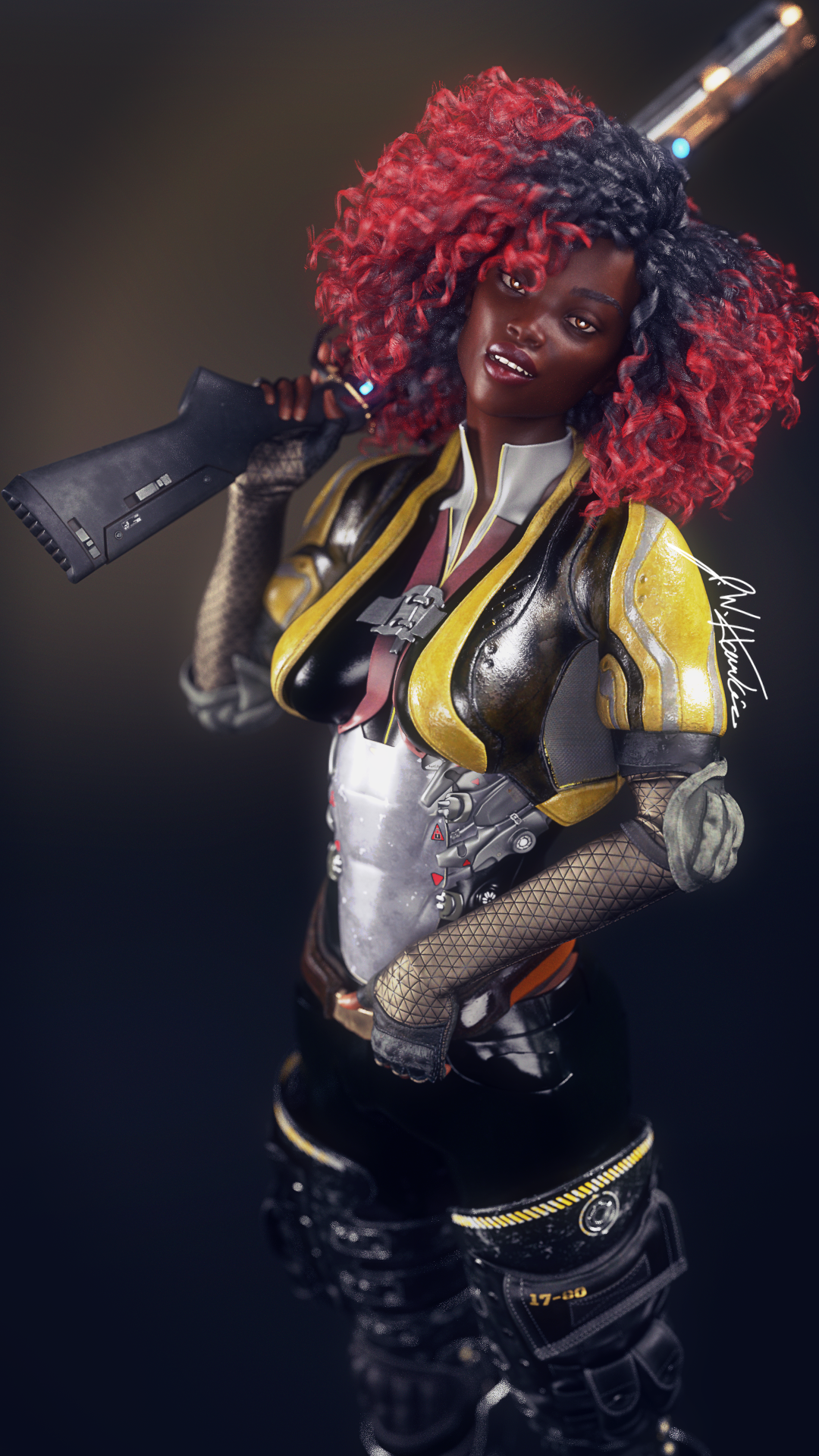 She’s a shotgun-wielding deal maker with tremendous intuition, who leads a small group that has been hired to capture the rogue android named R8UL.