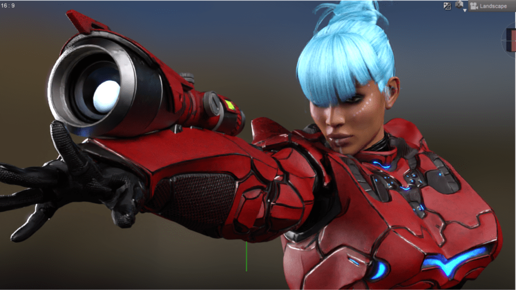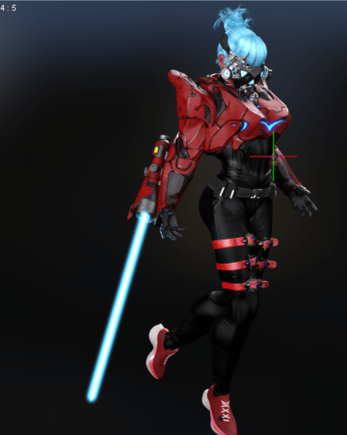 Her arm cannon serves multiple purposes as it can launch explosive energy projectiles as well as produce a blade of energy for melee combat.