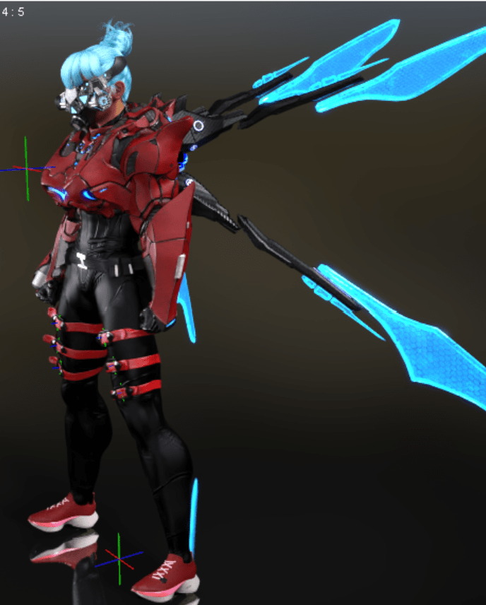 She was initially Inspired by mech pilots, then her suit started taking on the aspects of a mech itself. I threw a cannon on her arm giving some Megatron vibes, some wings for flight, and a deflector shield for defense.