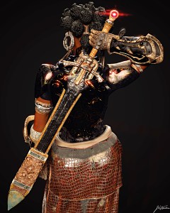 I was doing some kitbashing and playing with metal shaders when I came up with Zaraili. I really like the designs on her armor. She’s a queen fighting to regain her lost queendom. I’ll be sharing her renders throughout the week on my socials.
